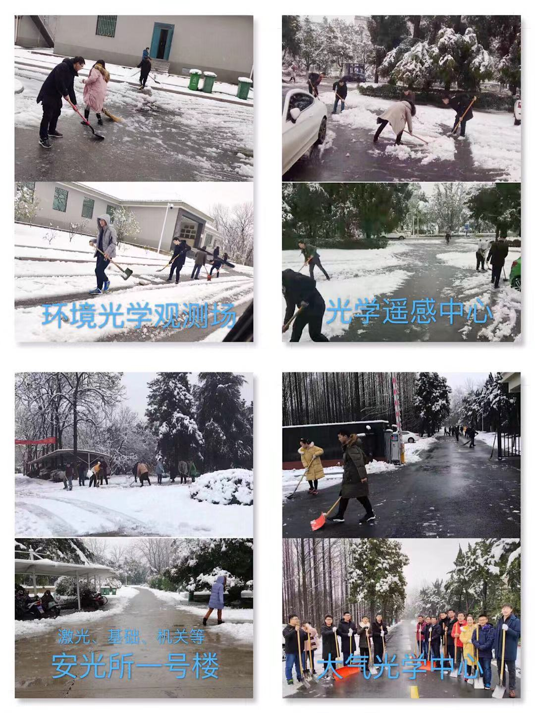 一夜大雪飘舞,天地银装素裹,合肥市迎来了2020年的首场降雪。为保证大家的出行安全和道路通畅,1月9日上午一上班,安光所各党支部第一时间组织党员干部群众对所辖科研园区及路段开展扫雪活动。