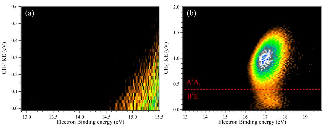 图2. 对应于CH3+碎片离子的电子离子平动能相关图
