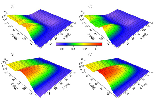 在国家自然科学基金(41305022, 41511130028)和中科院国际人才计划(2016VEA044)等项目支持下,中俄双方科学家首次从理论上计算了在高度角与方位角选择取向的六角形冰柱和冰片两种冰晶类型的后向散射穆勒矩阵。研究了通过垂直指向的偏振激光雷达测量后向散射矩阵的可能性,某些矩阵元(如M44、M22和M34)的测量在反演中其关键作用。