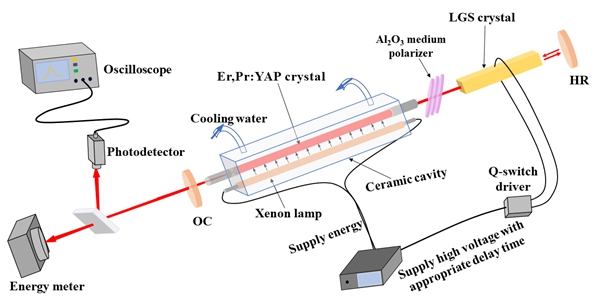 图3 氙灯泵浦Er,Pr:YAP晶体电光调Q固体激光器的实验装置示意图