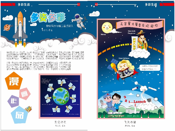 工作之余,校正仪项目组测试岗晏磊深度参与高分多模项目办政工组工作,发挥个人特长,担任试验队刊《大美之星GFDM》的主编一职,负责队刊的美术设计与排版,并在理解卫星特点的基础上,创作了《百变相机》、《飞天神锤》等漫画作品,画面生动有趣,获得卫星试验队一致好评。