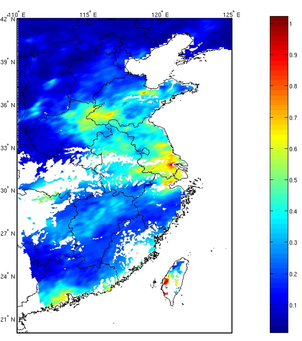 大气气溶胶多角度偏振探测仪-2018年10月2日中国区域气溶胶光学厚度反演结果