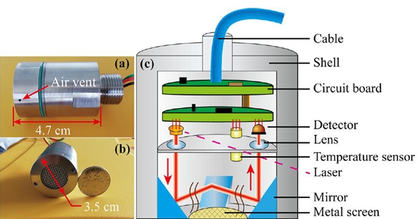 团队成员张乐文博士生、庞涛副研、孙鹏帅博士利用近红外激光吸收光谱技术与企业联合设计微型集成气室,结合传感器独特的封装方式赋予其优秀的防水防尘特性。该传感头相比具有较好的参数优势,如:无参考气室,内置电路及核心处理模块,可直接输出浓度信息,测量精度高,适用温度范围大且不失真(-40-70℃),成本较低,并且也完全满足了某些特殊危险场合的本征安全的要求,非常适用于一些敏感的应用领域。同时,该探头功耗非常低可电池或太阳能供电,非常适合于搭建燃气管道泄露、安全楼宇消防、综合管廊及存在待测气体聚集或者泄露地的物联网监控方案。虽然目前设计是以CH4测量为目标的点式传感器,后期课题组将继续攻关以便建立更多型号的微小型传感头实现对诸如NH3、H2S、O2、和CO等多种气体目标的快速原位测量。