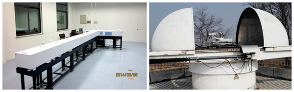 全球总碳柱观测网(TCCON)合肥站高分辨率FTS观测系统,左边是高分辨率光谱仪,右边是太阳追踪仪
