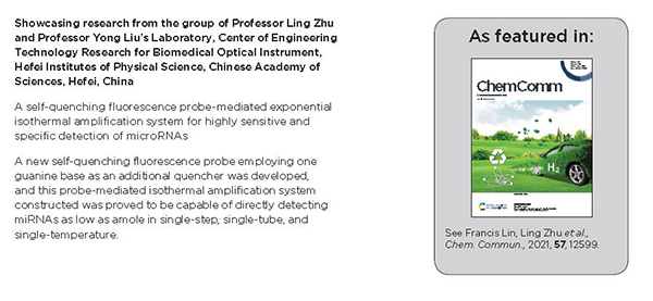 miRNA是一类内生的、长度约为20-24个核苷酸的小RNA,需要在专业实验室由专门技术人员进行分离纯化、探针制备和扩增检测等复杂过程,目前采用的传统反转录荧光定量PCR(qRT-PCR)是一种相对定量检测方法,分析其表达水平还需要内源性参照基因。针对这一问题,研究团队提出了用于肝癌相关miRNA快速检测的链置换数字等温扩增新技术,设计开发了新型荧光自抑制探针,实现了miRNA的绝对定量检测,提高了检测灵敏度,解决了单样本多靶标检测难点,相关成果作为封底文章发表在分析化学领域期刊Chemical Communications上;突破了微液滴高速制备与分发、高灵敏度实时荧光检测、高精度图像识别分割与统计算法等关键技术,成功研制了新型高通量微流控生物芯片及配套的生物芯片阅读仪,并联合中国科技大学附属第一医院、中科院合肥肿瘤医院开展临床应用研究,建立了基于甲胎蛋白和7个miRNA的肝癌早期诊断模型。研发的“数字PCR预混液试剂盒”获得了一类医疗器械备案凭证,完成了“生物芯片阅读仪”二类医疗器械的注册申报工作,获得了《受理通知书》。