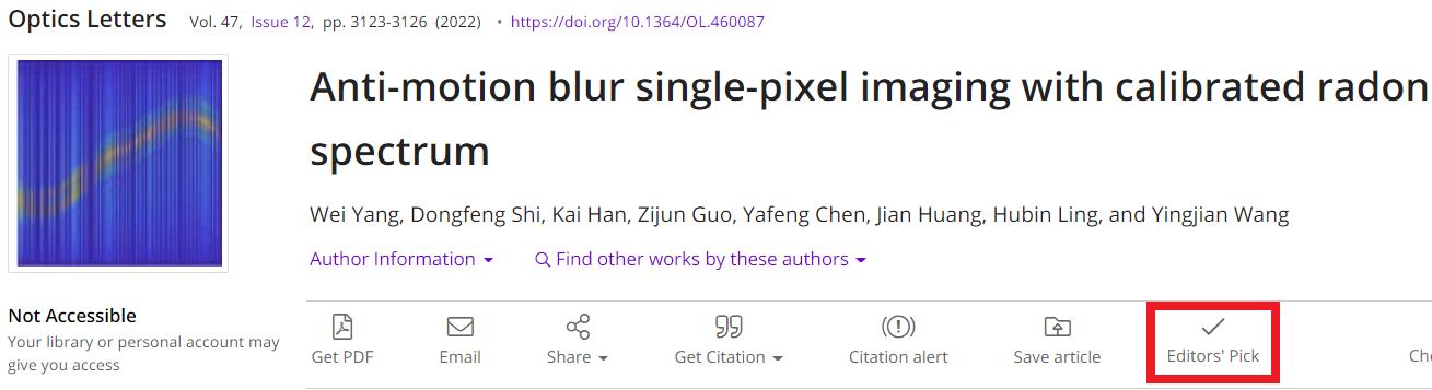 合肥研究院科研论文被选入Optics letters编辑精选Editor's Pick
