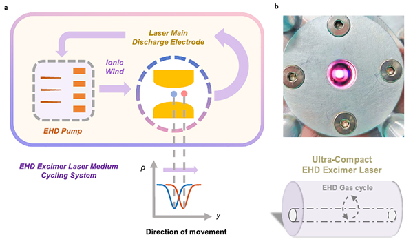 近期,中国科学院安光所梁勖研究员团队在准分子激光器的超紧凑系统设计及其应用研究中取得重要突破。团队成功设计出一种基于电流体动力学(Electrohydrodynamics,EHD)原理的新型超紧凑准分子激光器,相关研究成果以 “Electrohydrodynamic excimer laser: ultra-compact system and laser energy performance dynamics”(基于电流体循环的准分子激光器:超紧凑系统设计与激光能量动态特性分析)为题,发表于光学领域国际知名期刊APL Photonics(《应用物理快报-光子学》)。