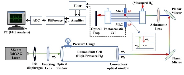 传统光声光谱技术基于吸收光谱原理无法直接对氢气实现高灵敏度探测;拉曼光谱技术虽然具有独特的气体指纹识别能力,天然适用于H₂等同核双原子分子。然而,自发拉曼散射的效率极低(散射截面通常比瑞利散射低3-6个数量级),导致信号极其微弱,极大地限制了其在痕量气体检测中的应用潜力。