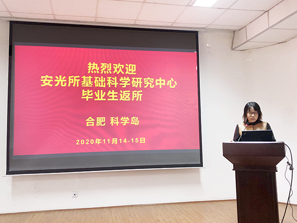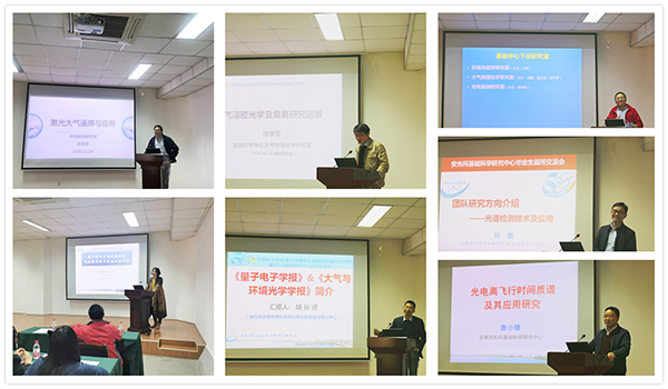 随后,赵卫雄研究员向各位毕业生介绍了目前中心概况及团队情况,中心副主任唐小锋、刘锟及各个研究室主任分别详细介绍了各自研究方向及主要成果,包括光电离质谱技术、光谱检测技术、激光大气遥感和气溶胶光学等。学术报告会上,两位研究生还同大家分享了青藏高原科考经历、学习无人机驾驶的体会。另外,文献情报与期刊中心副主任胡长进向大家介绍了《量子电子学报》和《大气与环境光学学报》期刊,并希望借毕业生返所之际,组织一期激光光谱新技术与应用学术专刊,以此向安光所建所50周年献礼。