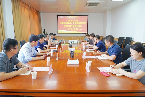 5月20日上午,中国科学技术大学工程科学学院副院长张世武、刘诚,精密机械与精密仪器系执行主任胡衍雷等一行到安徽光机所开展交流调研。会议由安徽光机所副所长赵南京主持,安徽光机所党委书记谢品华及科研骨干参会。
