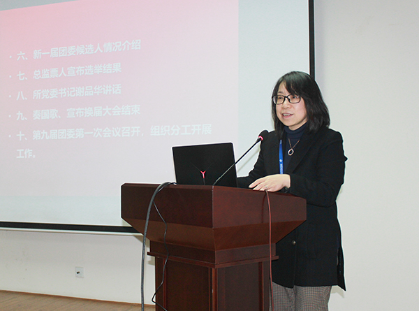 谢品华代表安光所党委向大会的成功召开和新一届委员会的成立表示热烈祝贺,并从以下对共青团和青年工作提出建议:一要以“党有号召、团有行动”为原则,加强对广大青年的思想政治引领。她强调:广大团员青年应不忘初心,坚定跟党走,始终牢记政治性就是团的灵魂,党旗所指就是团旗所向,要把加强对青年政治引领作为永恒的主责主业。二要以“围绕大局、服务大局”为主线,助力青年建功新时代,逐梦科研路,提升服务科研青年成长成才的动力,为建设创新型国家和世界科技强国贡献青春、智慧和力量。