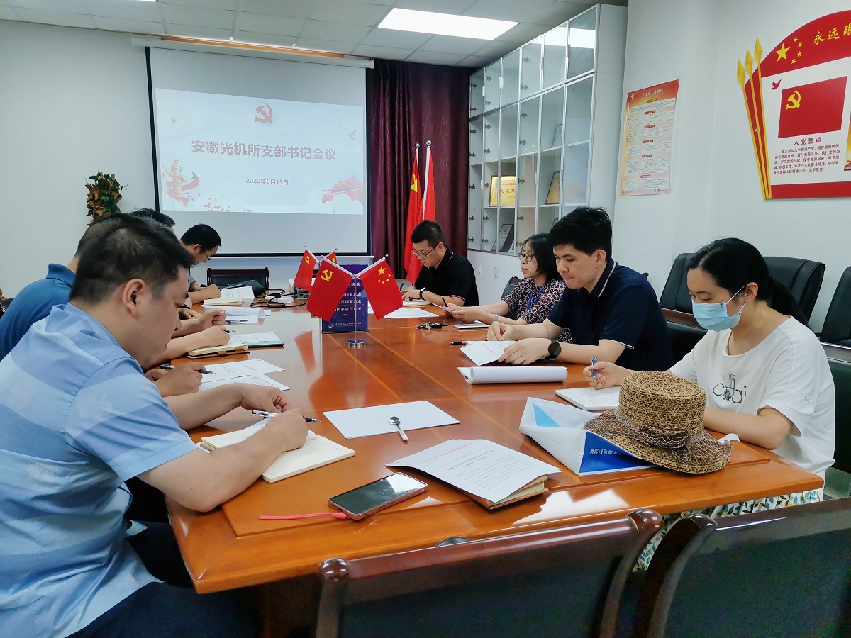 会上传达了中科院及合肥研究院关于开展“严谨表述、虚心治学”学风建设专项工作相关文件精神,汇报了中央八项规定精神自查进展情况。各支部书记共同商讨了2021-2022年度优秀共产党员评选工作,党建研究课题申报事宜,对七一表彰大会、集中党课学习等党建活动进行了讨论布置。