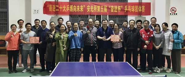 为丰富安光所职工研究生的业余文体生活、促进各中心间交流。11月19日,所工会、团委、研究生会举办了“喜迎二十大,乒博向未来”第五届“奋进杯”乒乓球团体赛。