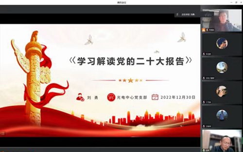 为深入学习贯彻党的二十大精神,12月30日下午,安光所党员委员刘勇副所长为光电子中心党支部全体党员讲授《学习解读党的二十大报告》专题“云”党课。