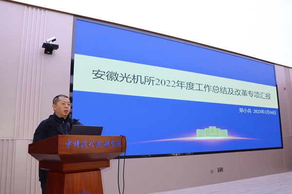 郑小兵做了题为《安徽光机所2022年度工作总结及改革专项汇报》,报告总结了2022年度工作,并提出2023年计划重点推进的工作。