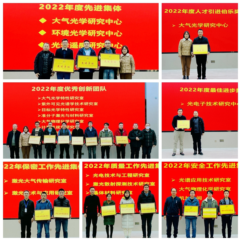 1月16日,安徽光机所召开年终表彰大会,表彰在2022年科研、开发、管理、保密、质量、安全等各项工作中取得优异成绩的集体与个人。安徽光机所所领导班子、全所中层管理人员、优秀集体代表110余人参加了表彰大会。谢品华主持会议。