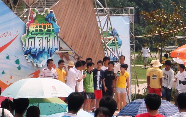 为丰富研究生文体活动,推进研究所创新文化建设,7月25日,在环境光学中心党支部书记赵南京的带领下,石朝毅、钟留勇、童晶晶、殷高方等人参加了安徽卫视主办的“男生女生向前冲”节目的录制活动,在活动中四人都表现出了勇敢、坚强、不惧困难的精神,展现了我们科学岛安光所学生勇往直前的风采,同时也强健了体魄,享受了快乐的心情。其中,童晶晶顺利闯关成功,当他闯关成功的那一刻,场上顿时响起了“一闪一闪亮晶晶……”的歌声,这个歌声是对童晶晶的鼓励,同时也是对他闯关成功的祝贺;钟留勇在过前几关时,犹如蜻蜓点水般轻松自如,顺利而快速的通过了前五关,在第六关遗憾的滑落水中;石朝毅、殷高方两人在第二关中没有很好的掌握要领,双双止步第二关。
