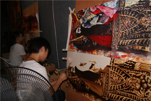 其中,根雕艺术馆和烙铁画艺术馆是本次参观的重点。根雕艺术馆里,龙翱凤翔、翙翙其羽,宛若直上九霄;神佛人物风骨翩然、衣袂出尘,雕刻得神乎其技,匪夷所思。烙铁画艺术馆,运用烙铁在木板的表面作画,轻重拿捏也是相当的考验技艺,画面的布局和构思加之木版画的纹理,让烙铁画满怀一种怀旧的味道,在演绎中国传统文化的画面上往往有独得之妙。