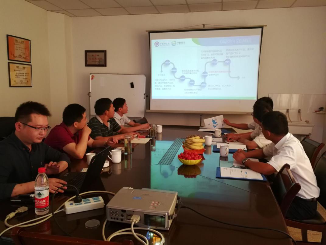 十七冶淮南分公司作为国有控股公司,业务涉及冶炼工程、市政工程、大型建筑、城市地下管廊等领域,在多个方面与我方有深入合作的机会和潜力。座谈会上,董凤忠研究员首先对安云副总一行的到访表示热烈欢迎;随后,介绍了我所在环境监测、光纤传感、大气遥感、航空航天、煤矿安全等研究方向取得的成果,同时对课题组目前在安防、智慧城市建设、综合预警等研究领域的应用可行性进行了详细介绍和分析;安云副总则就十七冶集团公司情况和在建工程项目作了简要介绍。与会双方就各自技术优势和工程需求进行了广泛交流和深入洽谈,形成了多条建设性意见,期望后续能够紧密合作实现共赢。