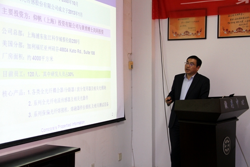 10月30日,上海康阔公司董事长、上海大学兼职教授黄勇博士到安徽光机所交流访问,并做了题为“光纤器件与光纤传感核心技术研究”的报告,激光中心20余位科研人员参加了报告会。