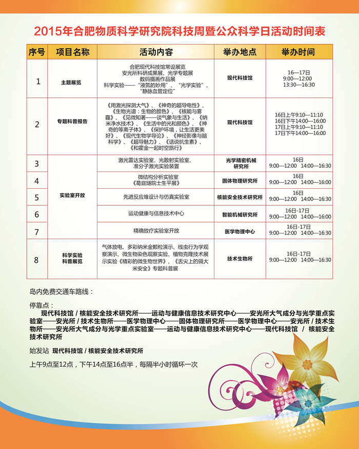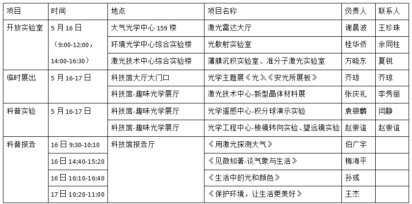 安徽光机所2015年科技开放周活动安排
