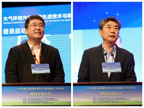 建设启动仪式上,省市、部委领导等嘉宾共同为国家工程实验室揭牌,并为20家共建单位的代表授牌;安徽省常务副省长邓向阳为实验室理事长匡光力、实验室主任刘文清、工程技术委员会主任郝吉明、副主任张远航颁发了聘书;合肥市常务副市长韩冰与中科院合肥研究院副院长刘建国签署了市院共建国家工程实验室战略合作协议,该协议中筹备成立的“中国科学院合肥研究院环境产业技术研究中心”也将落户于合肥蜀山经济开发区,带动中科院的成果转化和促进我国环保产业发展。