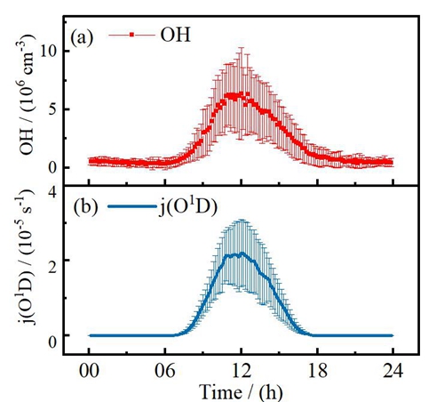 图3 OH自由基与j(O1D) 平均日变化趋势