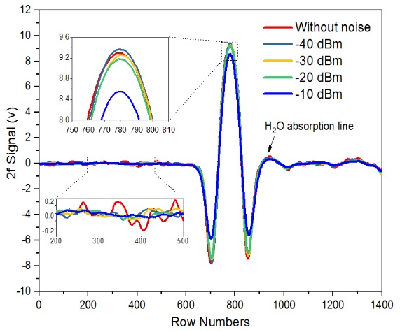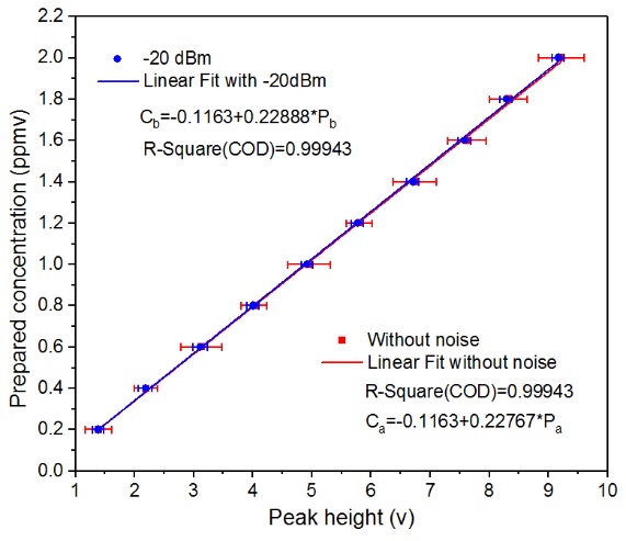 2f信号幅值与浓度之间的线性关系未受RF白噪声扰动的影响