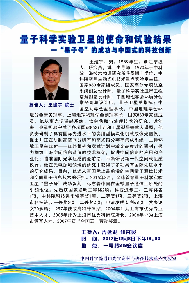 学术报告:墨子号的成功与中国式创新,王建宇院士(12.8)