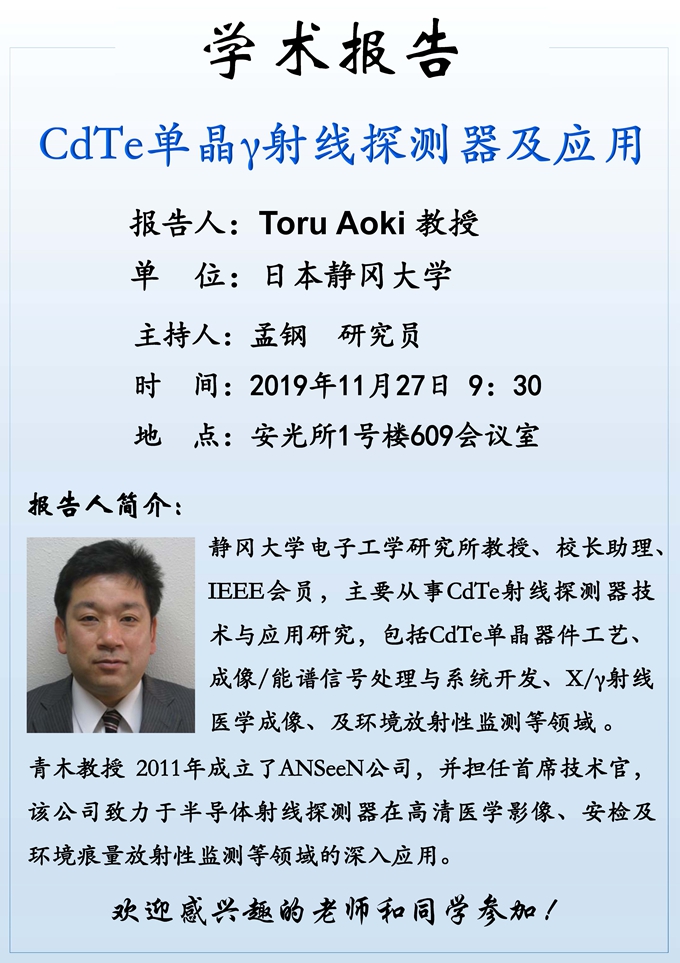 学术报告:CdTe单晶γ射线探测器及应用(11.27)-日本静冈大学