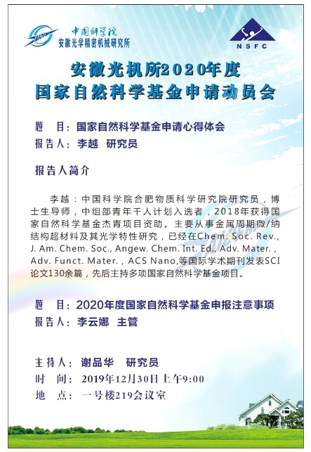 安光所2020年度国家自然科学基金申请动员会通知(12.30)