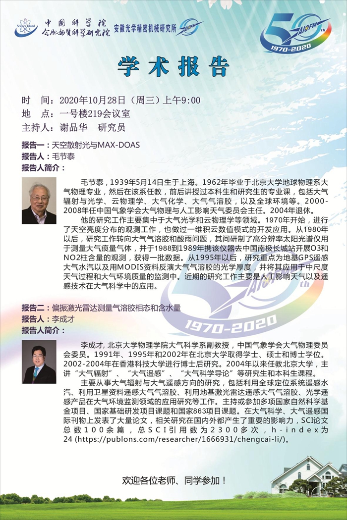 建所50周年系列活动:大气监测领域学术报告二场(10.28)