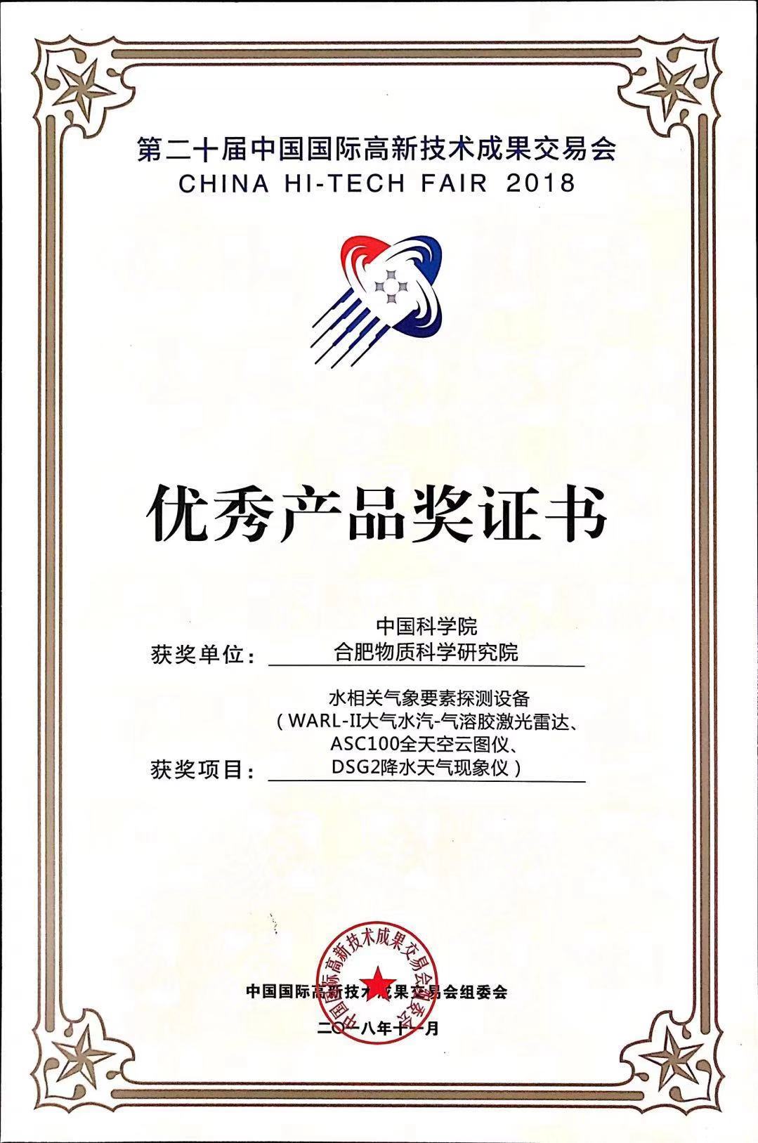 在海内外社会各界的大力支持与协助下,第二十届中国国际高新技术成果交易会(简称“高交会”)取得了圆满成功。近日,经专家评审、高交会组委会研究决定,安徽光机所大气光学中心牵头的“水相关气象要素探测设备”获第二十届中国国际高新技术成果交易会优秀产品奖。