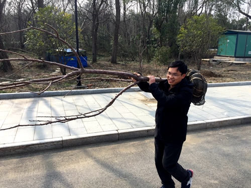 植树现场热火朝天,你挥锄、我舞锹,你培土、我浇水,大家通力合作,严格把握每道工序,规范每一个步骤,力求栽一棵树,活一棵树。大家从井然有序的实验室走出来,每一个人都感受到了劳动的喜悦。