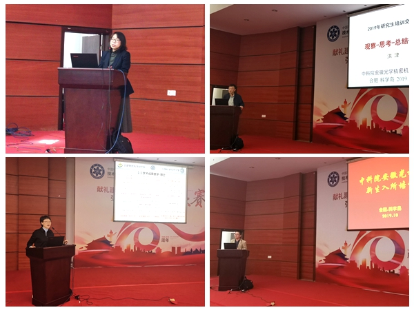 培训伊始,谢品华研究员对入所硕博新生表示欢迎,祝贺18级硕士顺利完成了中科大课程学习阶段,希望新生们调整好状态,投入到紧张的科研工作中,开展自己的研究历程。 洪津研究员作为导师代表做了题为《观察-思考-总结-沟通》的培训报告,结合自己的科研历程,为大家介绍了研究生阶段与本科阶段的不同,要着重培养科技创新能力,用通俗生动的语言分享了研究生培养的经验。随后,研究生国奖获得者童彬作为研究生代表进行了经验分享。最后,秦娟娟老师召开了研究生班会,详细介绍了硕博阶段的培养方案和要求,研究生管理制度、研究生学习生活中的各项注意事项,并对新生们的一些疑问进行了详细解答。