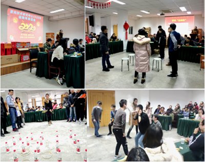 活动伊始,激光中心前主任方晓东研究员给大家介绍了中心19年在科研、生产、学生培养等方面所付出的努力,寄语大家在新的一年更上一层楼;中心副主任张庆礼研究员希望研究生同学积极努力,为中心的发展注入活力;新支部书记张志荣同志希望大家“厚植家国情怀,不忘初心,勇担使命,只争朝夕,不负韶华”,同时给全体同仁及其家人送上了诚挚的新年祝福。在本次茶话会活动中,穿插了抢凳子、成语接龙、运面粉、套圈、你比我猜等多种游戏,大家在游戏中惊喜不断、共同协作、互帮互助,展现了很强的团队凝聚力和自豪感,同时也为大家平添了很多的欢笑。同时,在游戏活动过程中穿插了幸运抽奖环节,和着动感十足的背景音乐,悬念一一揭晓,引来阵阵惊叹和幸运者的欢呼,为活动增添了无限动力和绚丽的色彩。