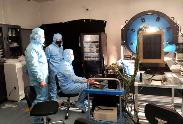 中心承担的航天载荷项目任务重,时间紧,为保证项目进度,采取疫情防控和项目研制工作两手抓,并就测试工作和防疫进行了科学布置,保证了验收测试工作的安全有序进行。由于载荷的测试工作在超净间密闭空间进行,具有一定的特殊性,为克服重重困难,在做好消毒工作的同时控制实验室人数,合理安排轮班轮岗。从2020年2月3日起进行定标测试及出所性能测试;2月26日-3月2日进行载荷总体交付验收测试。对待工作安排,大家尽职尽责,无怨无悔,齐心协力,在严峻困难的环境下,确保了GF-5(02)卫星大气痕量气体差分吸收光谱仪载荷出所测试与总体验收测试圆满完成。