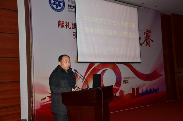 12月10日上午,安光所2020年度研究生入所教育暨兼职研究生辅导员聘任仪式在综合实验楼报告厅举行。安光所党委书记谢品华,副所长赵南京,合肥研究院研究生处处长李贵明、副处长孙凌云,安光所部分研究生导师,班主任秦娟娟、中科大环光学院班主任刘萍以及全体新入所研究生参加了会议。会议由赵南京副所长主持。