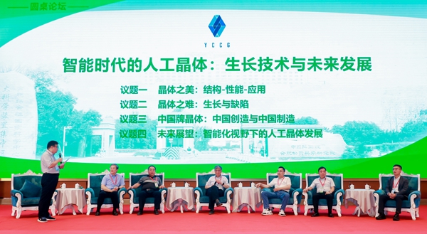 会议首次开设圆桌论坛,围绕“智能时代的人工晶体:生长技术与未来发展”主题,祝世宁院士、陶绪堂教授、徐军教授、徐科研究员、叶宁教授、石刚副总裁等6位学界或行业翘楚作为对话嘉宾,围绕智能化视野下大家共同关注的晶体之美、晶体之难、中国牌晶体和未来展望4个主要议题进行了深度对话。众专家就人工智能对于晶体研发与产业化方面的推动作用以及人工晶体对于人工智能的支撑的讨论和互动引发了与会者的广泛关注与讨论,并将会议讨论推向高潮。
