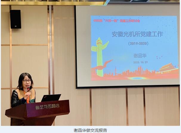安光所党委书记谢品华在会上介绍了安光所党组织的基本情况,围绕基层组织体系建设,党支部标准化、规范化建设,主题教育扎实开展,在急难险重任务中发挥“两个作用”的有效措施等方面与与会代表进行了交流。