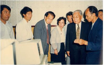 1988年龚知本所长向全国人大副委员长严济慈介绍安光所科研进展
