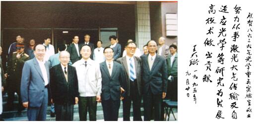 1995年10月18日,王大珩参加中科院安光所“863计划”大气光学重点实验室成立仪式,并题词祝贺