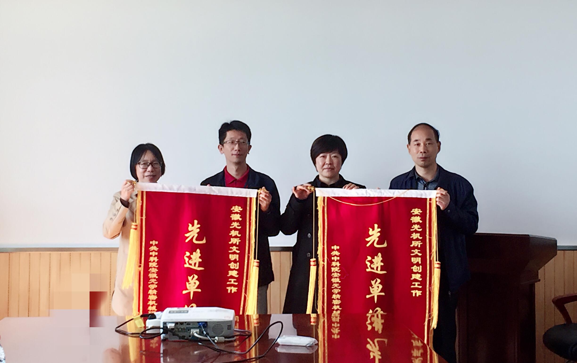 检查总结评议会上,检查组成员按照检查标准与评分等级,评选出2个文明创建先进单位。大气光学研究中心、光学工程中心表现突出,被评为“2018年安徽光机所文明创建工作先进单位”。饶瑞中、谢品华为先进单位颁发了锦旗。