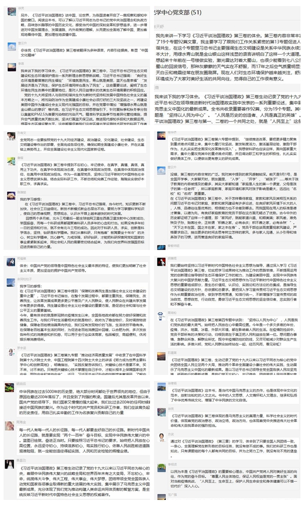 为积极响应《中央宣传部、中央组织部关于认真组织学习〈习近平谈治国理政〉第三卷的通知》,安光所环境光学中心党支部自8月下旬向支部党员分发了学习资料组织学习。由于支部多数同志承担了大量外场实验工作,党支部于9月3日,在书记张天舒的带领下采用线上研讨的方式,组织共学《习近平谈治国理政》(第三卷)论著的主体内容,集中讨论了第4专题 “坚持以人民为中心”,第5专题“决胜全面建成小康社会,决战脱贫攻坚”,第6专题“推动全面深化改革实现新突破”,第9专题“推动经济高质量发展”,以及第13专题“促进人与自然和谐共生”等方面的内容。