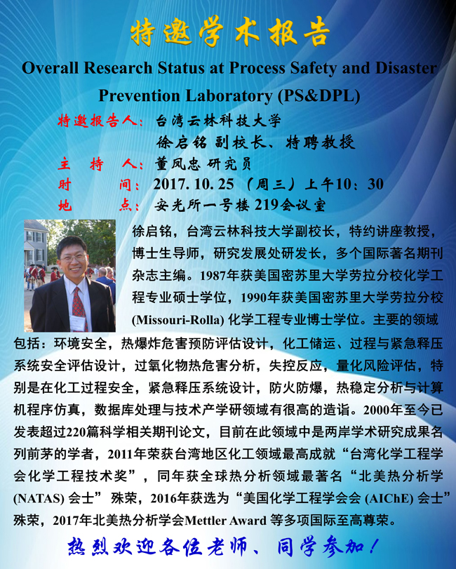台湾云林科技大学徐启铭校长、特聘教授学术报告(10.25)