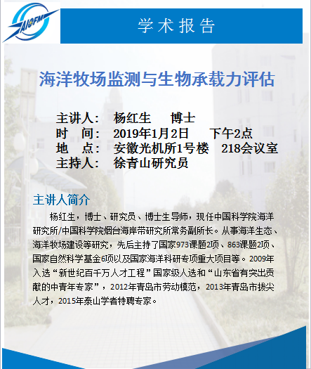 学术报告:海洋牧场监测与生物承载力评估(2019.1.2)