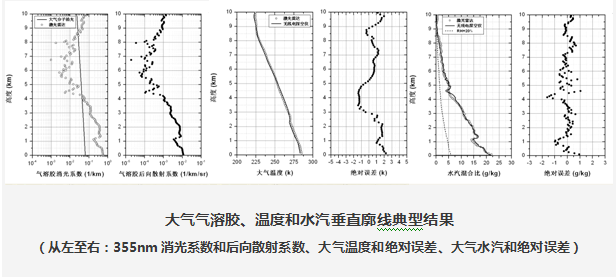 u 同时测量近地面至10km高度范围内大气温度、水汽和气溶胶消光系数垂直廓线,大气温度测量精度为±2k,水汽测量精度为±1g/kg,气溶胶消光系数测量精度为±0.1km-1