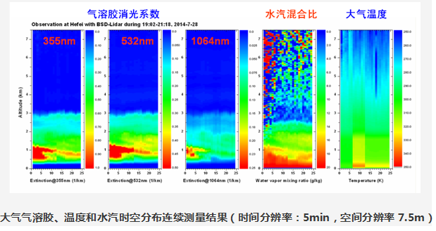 大气溶胶和云时空分布演变特征 大气气溶胶退偏振比、消光或后向散射系数、激光雷达比、颜色比等光学特征 大气水汽和温度时空分布演变特征 | |