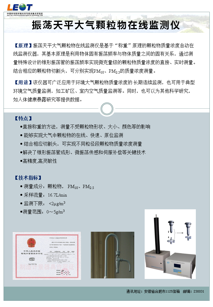振荡天平大气颗粒物在线监测仪